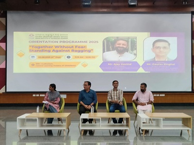 Orientation Programme 2025 – Day 3 On 1st August 2025 (Friday), as part of the Orientation Programme, students attended a thought‑provoking invited talk on “Save the Tiger …and maybe also the ‘Rudra Veena’ – A SPIC MACAY Perspective”.